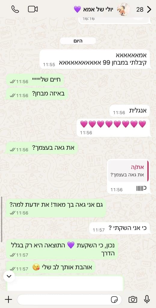 ההודעה הזאת מיולי שלי רגע אחרי שיצאה מהלימודים